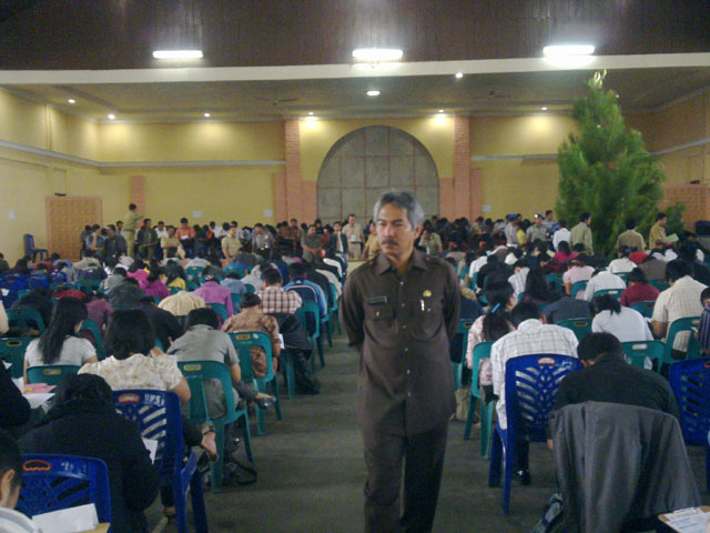 Elvriyanti yang ikut ujian untuk formasi Tenaga Guru mengaku, Ia baru saja lulus dari Unimed, juga merasa kewalahan menjawab soal ujian CPNS ini.